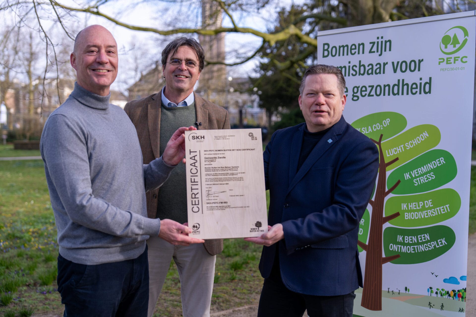 Oscar van Doorn (SKH), Maarten Willemen (PEFC Países Bajos) y Arjan Spaans (municipio de Zwolle). Crèdits PEFC Països Baixos